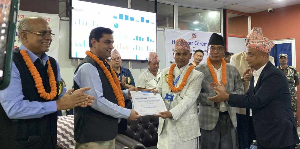 स्वास्थ्य मन्त्रालयले फाल्गुन २०८१ मा “एकीकृत विद्युतीय चिकित्सा अभिलेख प्रणाली सञ्चालन तथा व्यवस्थापन निर्देशिका” जारी गर्दै विद्युतीय चिकित्सा अभिलेख व्यवस्थित गर्ने व्यवस्था गरिसकेको थियो। ई एम आर प्रणालीको स्थापनामा विश्व स्वास्थ्य संगठनको सहयोग रहेको छ। मन्त्री पौडेलले यस सहयोगका लागि WHO प्रति आभार व्यक्त गरे।