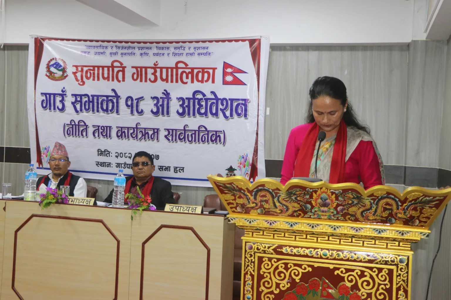 रामेछाप, असार ८ — रामेछाप जिल्लाको सुनापति गाउँपालिकाले आर्थिक वर्ष २०८२/८३ का लागि आफ्नो वार्षिक नीति तथा कार्यक्रम सार्वजनिक गरेको छ। शनिबार गाउँपालिकाको १८औँ गाउँसभा अधिवेशनमा उपाध्यक्ष गीता विष्ट चौलागाईंले नीति तथा कार्यक्रम प्रस्तुत गर्दै गाउँको विकास प्राथमिकताका विषयहरू सार्वजनिक गरिन्।
